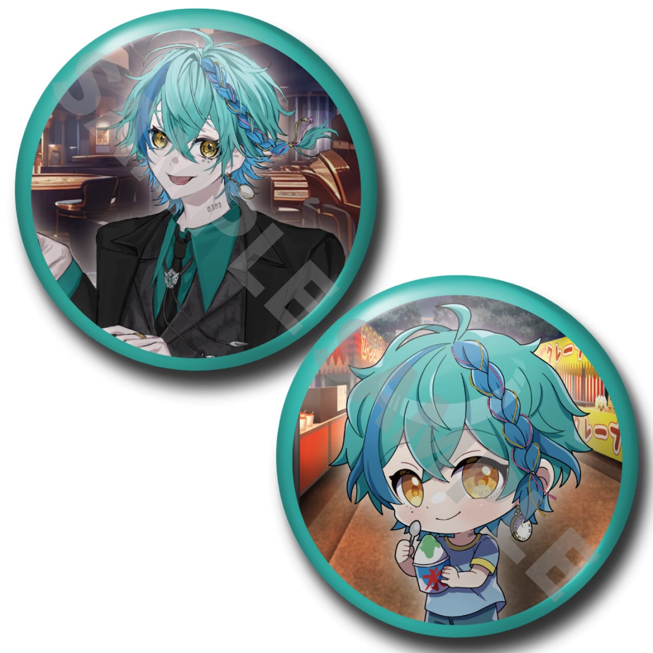 サマーグッズのランダム缶バッジ。